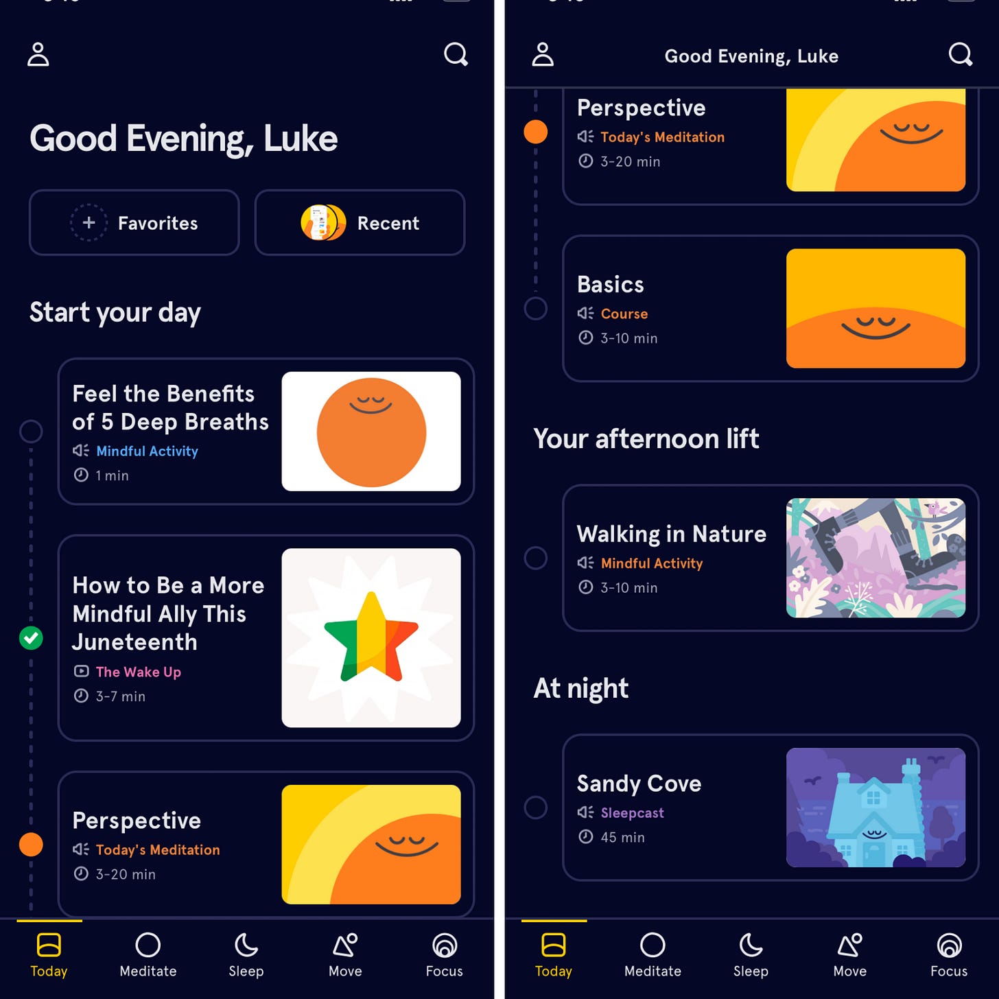 The app is broken into four main categories: meditation (what they’re most known for), sleep (what this insomniac is most intrigued by), move (what I’ll probably never use), and focus (what I use while working).